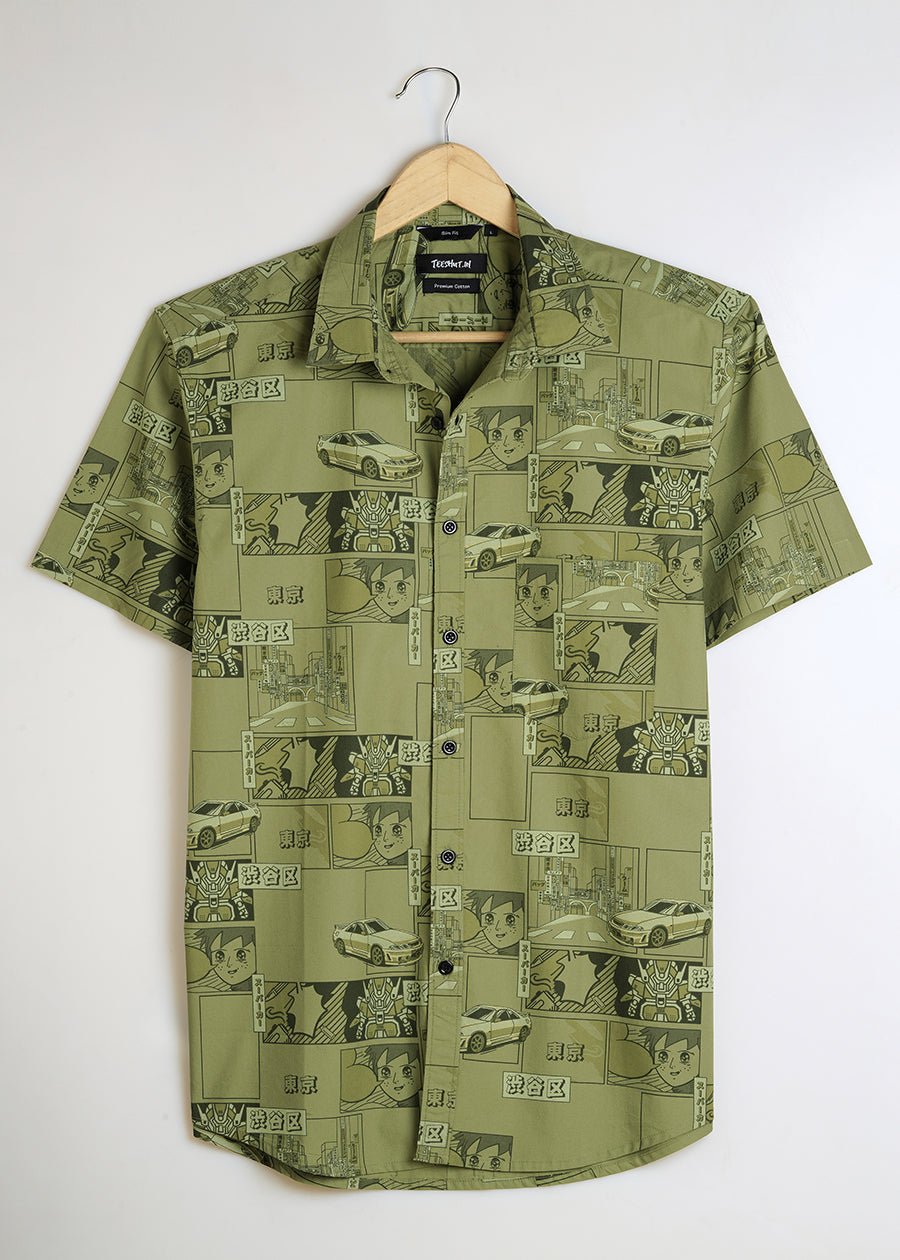 Upgrade your style with our premium Anime Printed Mens Half Sleeve Shirt – Basil Green. Designed for comfort and everyday wear.