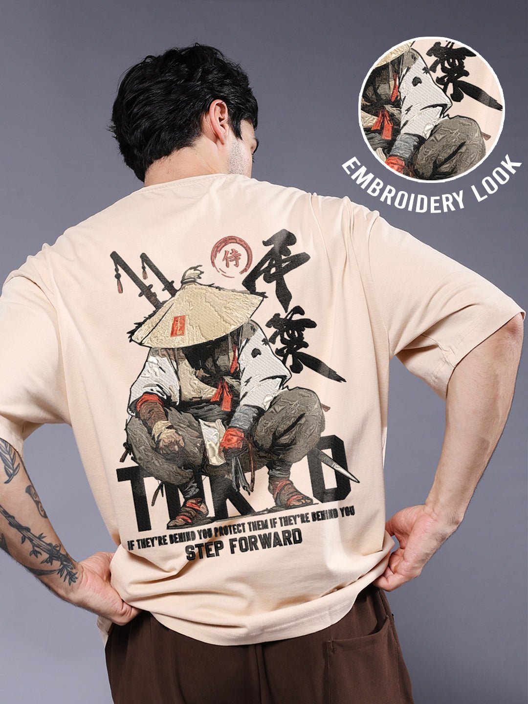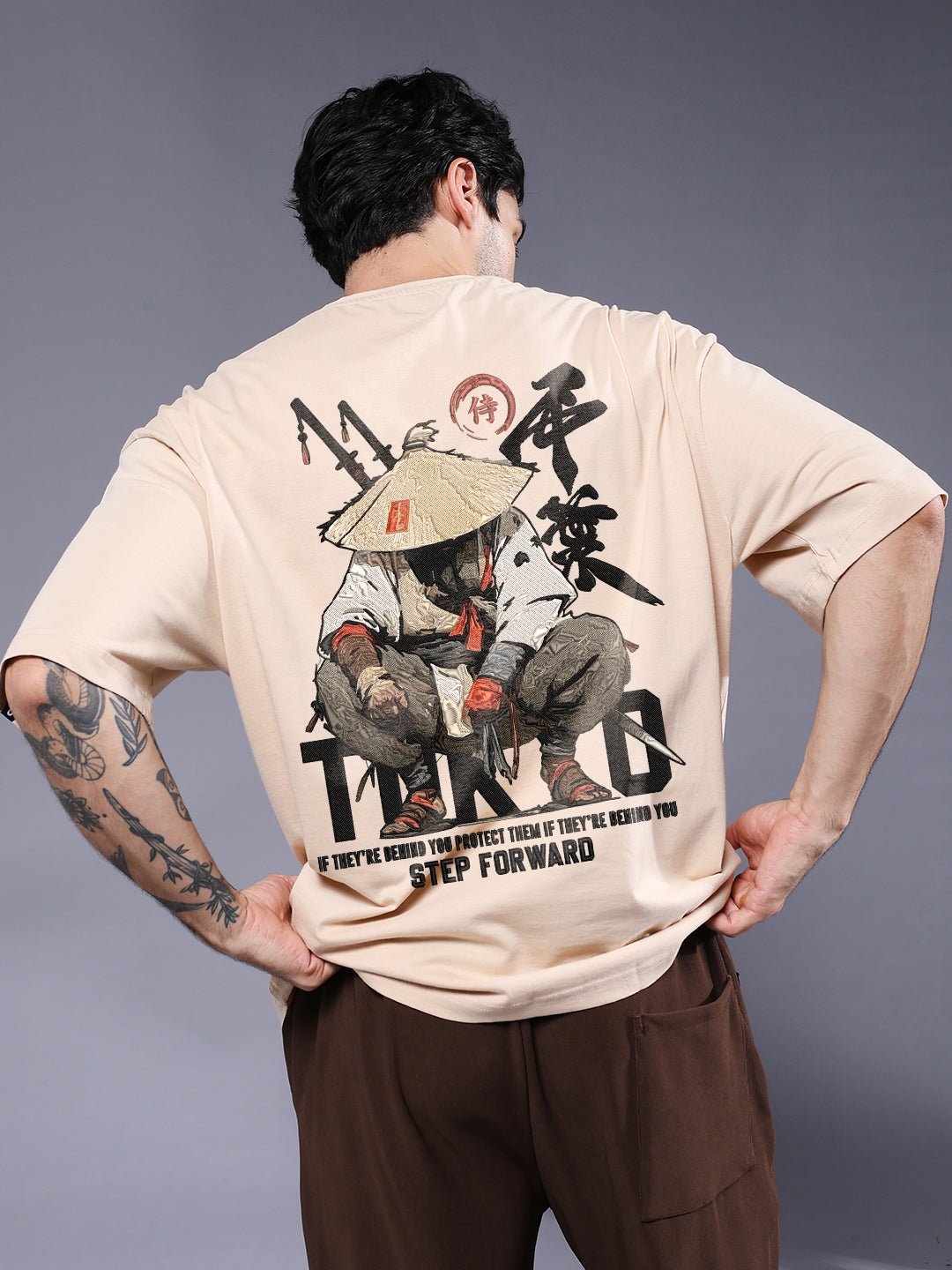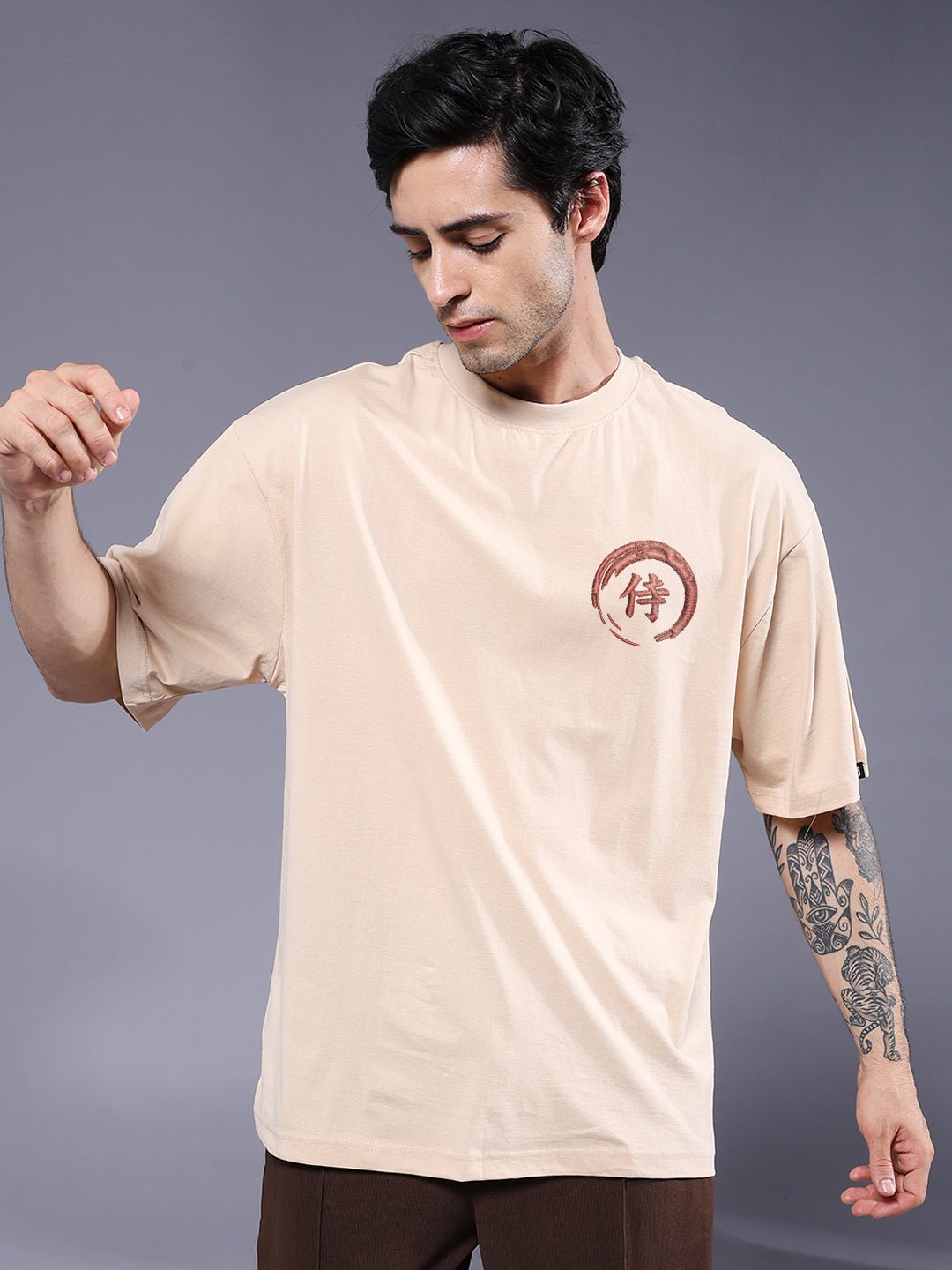 Product Detail : Half Sleeves Crew Neck 200 GSM Fabric Fit: Oversized Fit Fabric: 100% Premium Cotton | Sustainable 2X stronger cotton thread used Size: Model is wearing L size Country of Origin: Proudly Indian Washing Instructions: Machine wash. Do not iron directly or scrub on print. Dry on flat surface as hanging may cause measurement variations Color shown in the picture may vary from the actual product due to different lighting Product Description DISCIPLINE OVER FEAR oversized men’s T-shirt beige color by PRONK— relaxed fit, and premium comfort for everyday streetwear style. Available in XS to XXL size.
