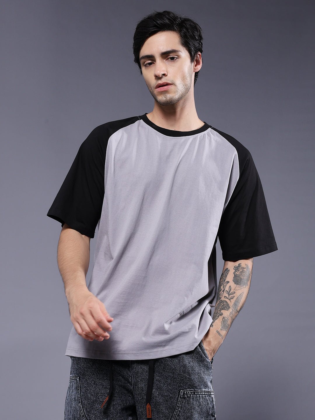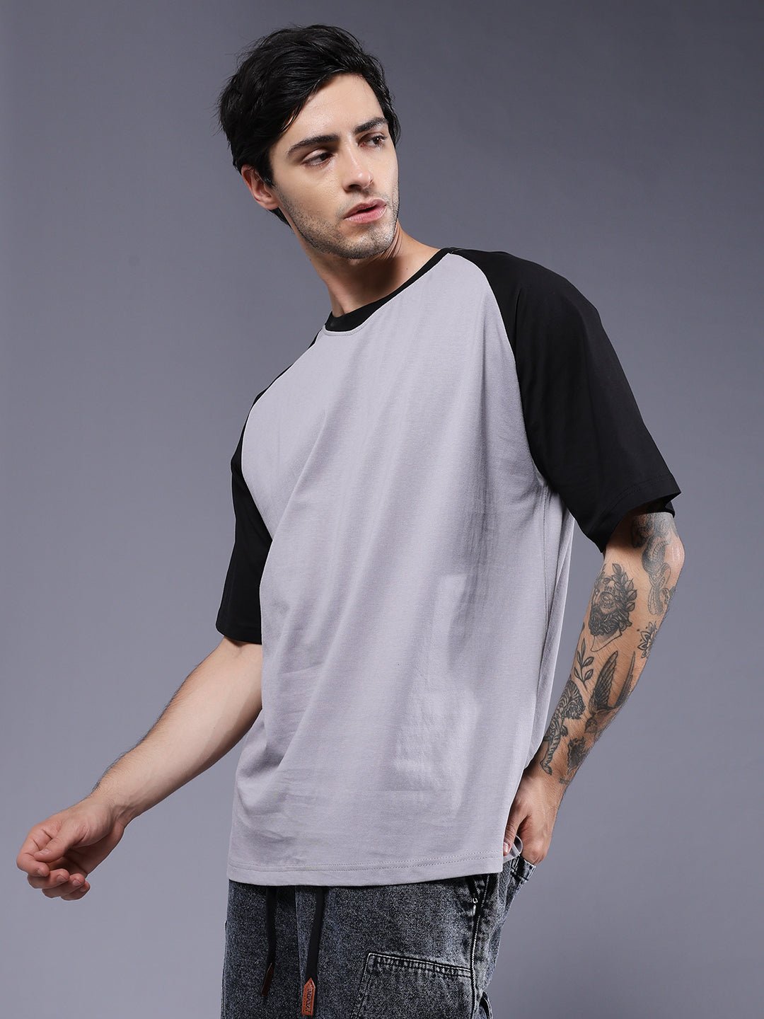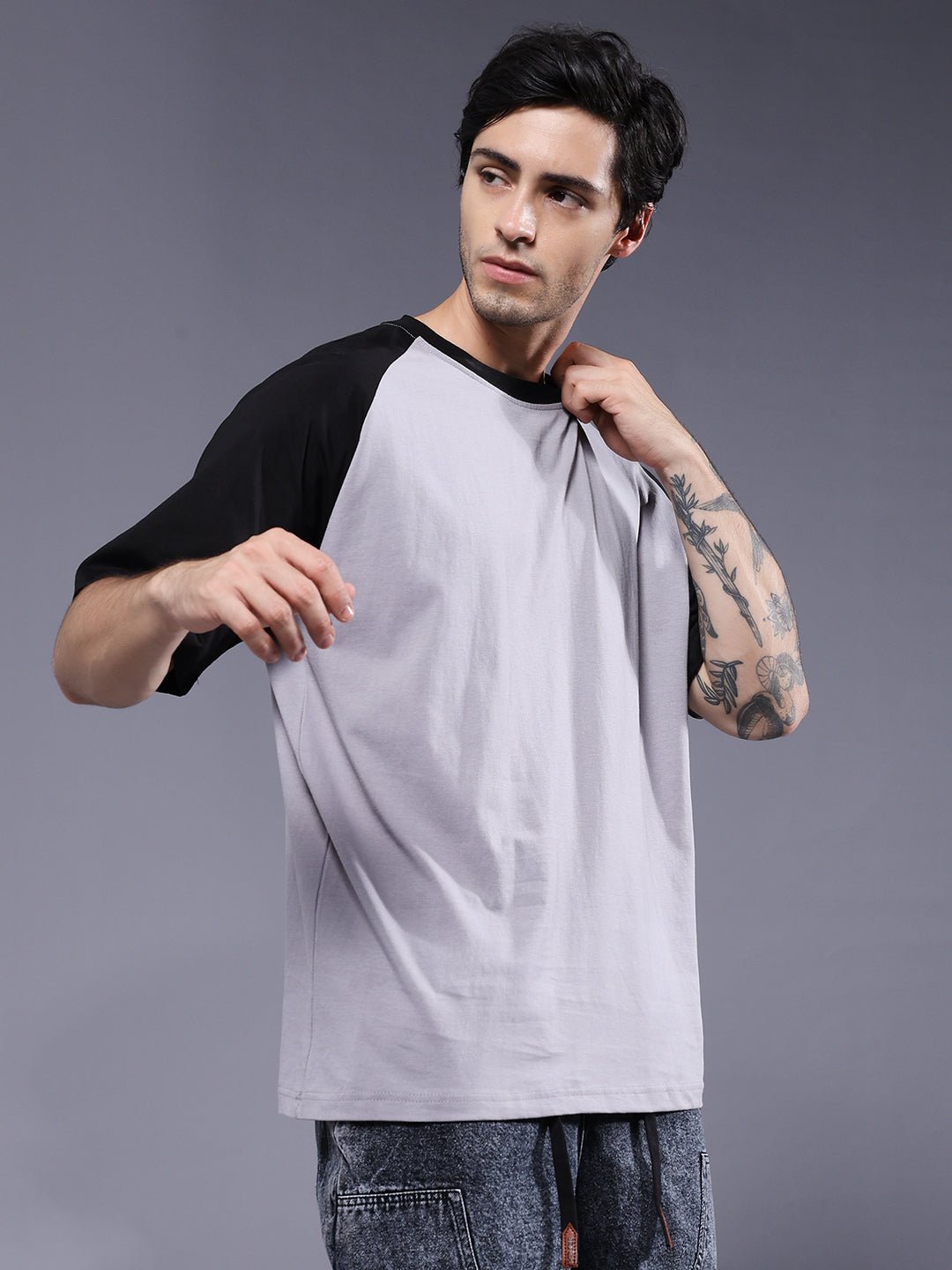 Product Description Men Oversized t-shirt with raglan sleeves and a relaxed fit for a trendy streetwear look. Crafted from soft and breathable fabric to keep you stylish and comfortable all day. Specifications Fit: Oversized Fit Pattern: Colorblock Material: 100% Cotton Neckline: Crew neck Sleeve Type: Half sleevesOccasion: Casual, streetwear Size: Model is wearing L size Country of Origin: Proudly Indian Washing Instructions: Machine wash cold, do not bleach Color shown in the picture may vary from the actual product due to different lighting