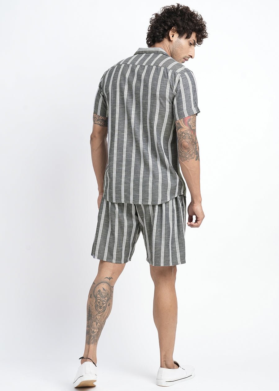 • Country of Origin: Proudly Indian• Material: 100% Cotton Fabric• Model is wearing L size• Pockets: 2(Side) pockets• Fit: Regular Fit• Bio Washed, Preshrunk, Silicon Washed Fabric• Sustainable 2X stronger cotton thread used• Wash Care: Machine wash. Do not iron directly or scrub on print. Dry on flat surface as hanging may cause measurement variations Product Description Buy steel blue men premium cotton twill Co-ord Set online from Pronk India’s fastest growing fashion brand. Available in S, M, L, XL, XXL sizes. Explore trendy collection of co-ord sets for men’s at our website.