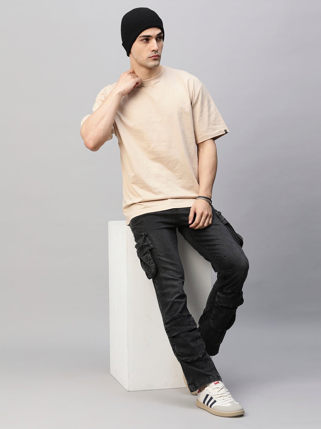 Product Description Denim Cargo Pants 6 Front Pockets, 2 Back Pocket, 2 Side Pocket Fit: Straight Fit Fabric: 100% Premium Denim Size: Model is wearing L size Country of Origin: Proudly Indian Washing Instructions: Machine wash. Do not iron directly or scrub. Dry on flat surface as hanging may cause measurement variations Color shown in the picture may vary from the actual product due to different lighting Contents: Package Contains 1 Denim Cargo Jeans Product Description Shop best quality men’s straight fit black utility cargos online at the best price from PRONK. Available in S,M,L,XL size. Explore the trendy collection of men’s straight fit utility cargos. Free Shipping. Buy now!
