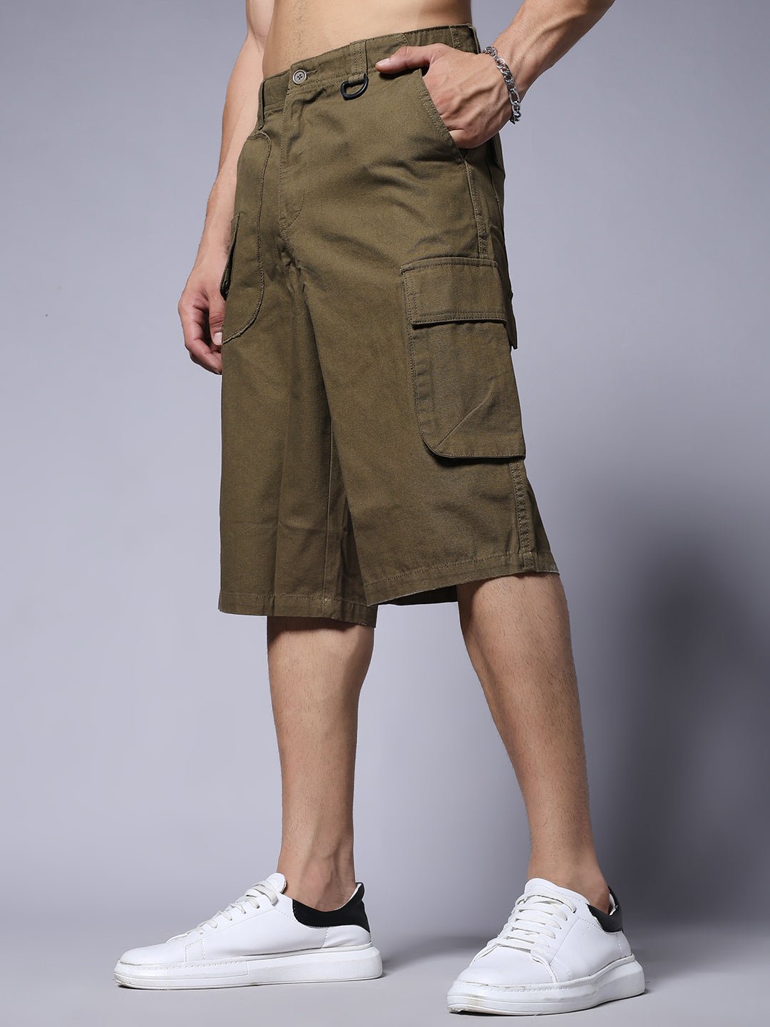 Product Description Regular Waist Comfort Wear at Home Fabric : Cotton Twill Fit: Regular Fit Fabric: 220 GSM | Heavy Gauge Fabric Size: Model is wearing L size Country of Origin: Proudly Indian Washing Instructions: Machine wash. Do not iron directly or scrub on print. Dry on flat surface as hanging may cause measurement variations Color shown in the picture may vary from the actual product due to different lighting Product Description Buy premium-quality Olive Men’s Utility Cargo Shorts from Pronk, one of India’s leading fashion brands. Made with durable cotton twill and designed with multiple utility pockets, these shorts are perfect for comfort, function, and style. Available in all sizes – XS, S, M, L, XL – they’re ideal for everyday wear or outdoor use. Choose Pronk for trusted quality and smart fashion.