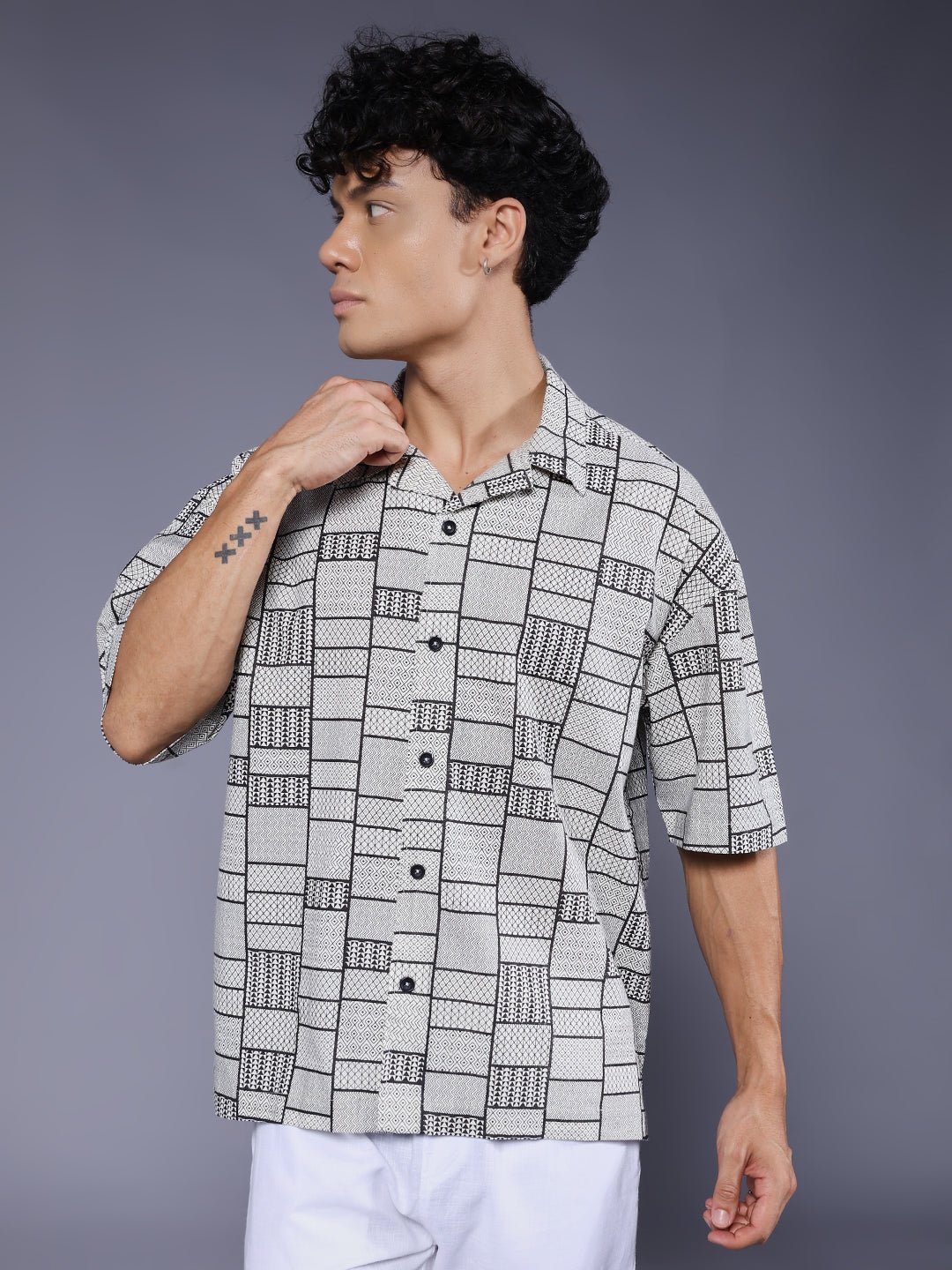 Stay cool and stylish with off white half sleeve shirt for men featuring relaxed fit and bold abstract design. Made from soft rayon fabric. it is perfect for casual wear or summer outings. Specifications Sleeve Type: Half Sleeve Fit: Relaxed Fit Pattern: Breeze Material: Rayon Fabric Neck Style: Cuban Collar Closure: Front Button-Down Size: Model is wearing L size Country of Origin: Proudly Indian Washing Instructions: Machine wash. Color shown in the picture may vary from the actual product due to different lighting Product Description Buy men’s half sleeve casual shirt online from PRONK. Available in XS to XL size. Choose from the wide collection of men’s half sleeve casual shirts.