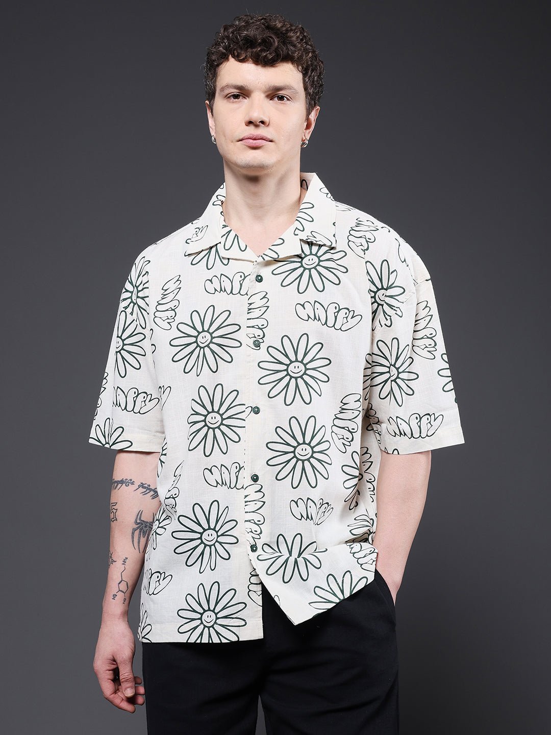 Stay cool and stylish with off white half sleeve shirt for men featuring relaxed fit and bold abstract design. Made from soft rayon fabric. it is perfect for casual wear or summer outings. Specifications Sleeve Type: Half Sleeve Fit: Relaxed Fit Pattern: Breeze Material: Cotton Flax Slub Fabric Neck Style: Cuban Collar Closure: Front Button-Down Size: Model is wearing L size Country of Origin: Proudly Indian Washing Instructions: Machine wash. Color shown in the picture may vary from the actual product due to different lighting Product Description Buy men’s half sleeve casual shirt online from PRONK. Available in XS to XL size. Choose from the wide collection of men’s half sleeve casual shirts.