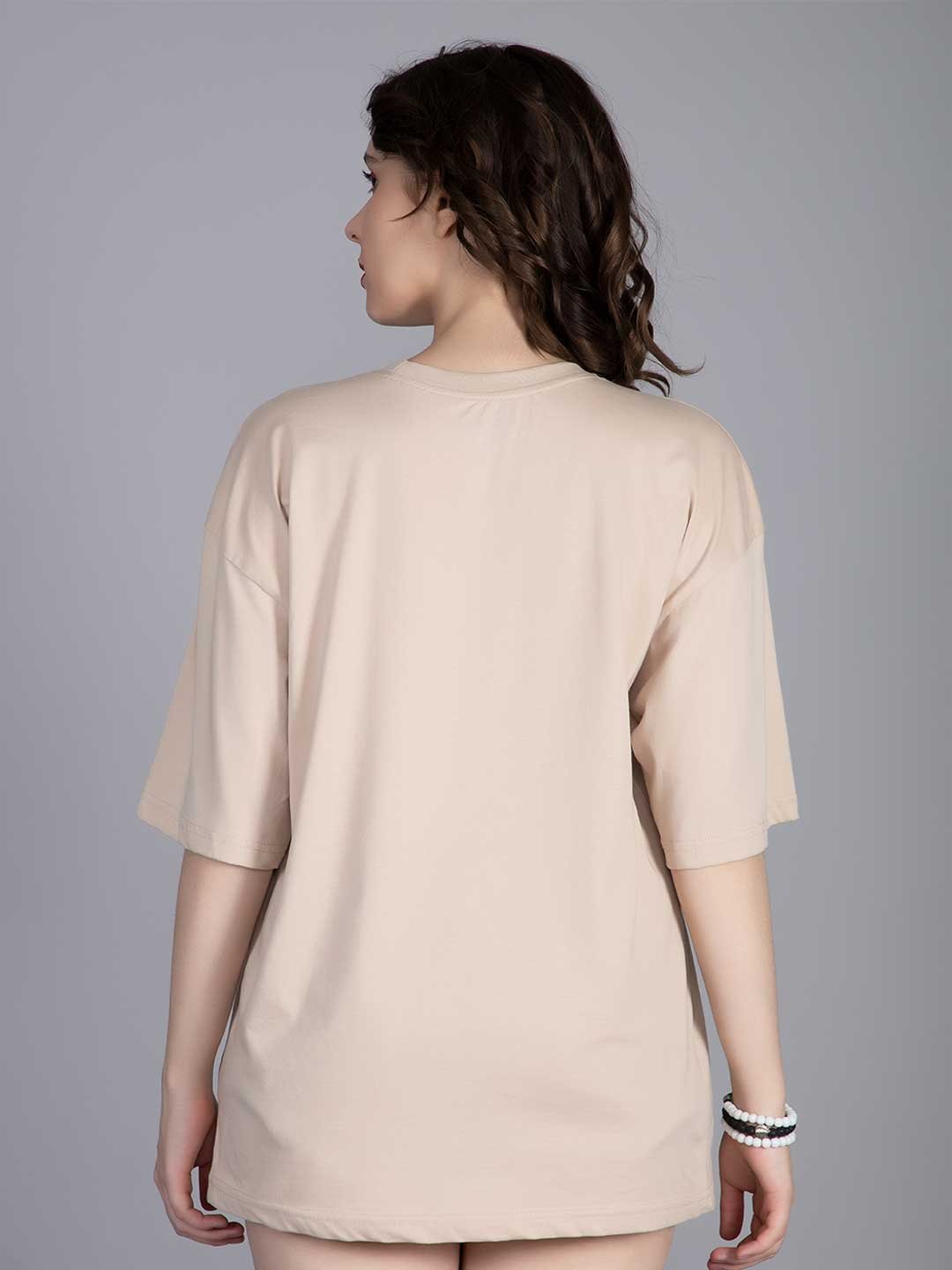 Product Details: Half Sleeves Crew Neck 200 GSM Fabric Fit: Oversized Fit Fabric: 100% Premium Cotton | Sustainable 2X stronger cotton thread used Size: Model is wearing L size Country of Origin: Proudly Indian Washing Instructions: Machine wash. Do not iron directly or scrub on print. Dry on flat surface as hanging may cause measurement variations Color shown in the picture may vary from the actual product due to different lighting Product Description Make a bold statement with beige color NEW WORLD Women Graphic Oversized Printed T-Shirt. Buy online from PRONK, available in XS to XXL size. Free Shipping!