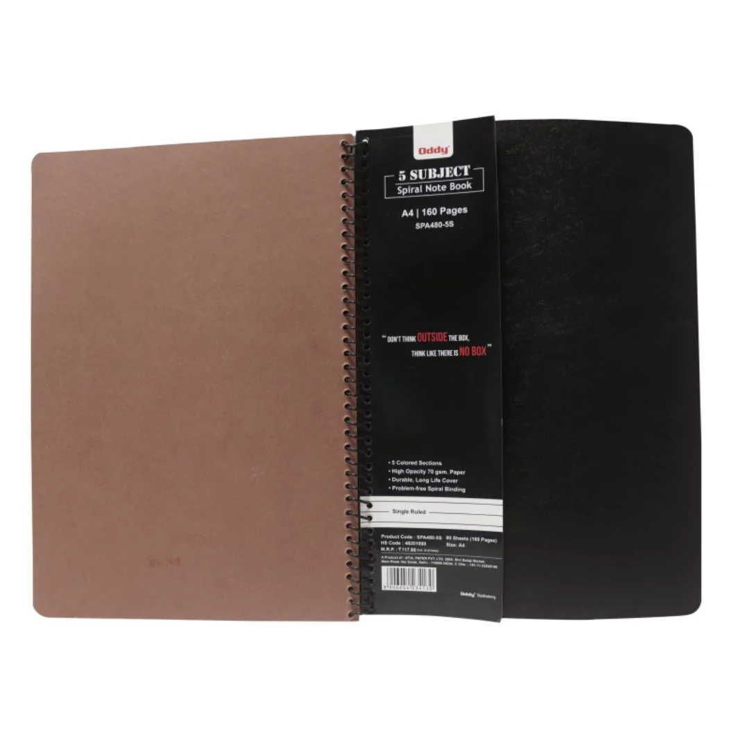 - With its attractive and vibrant cover designs combined with excellent craftsmanship, the Oddy 5-Subject Spiral Notebook is both practical and stylish ideal for academic and regular use.