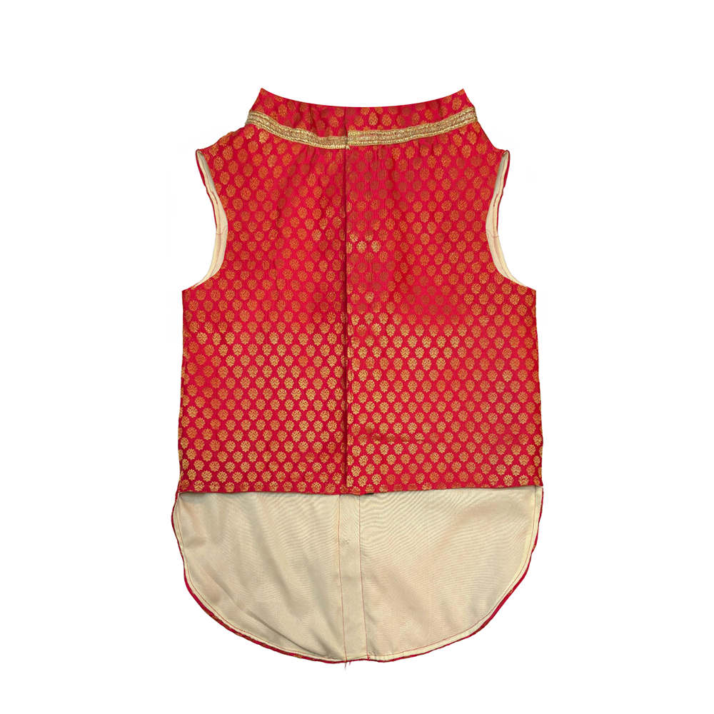 Pawsindia Traditional Royal Brocade Kurta for Cats (Red)