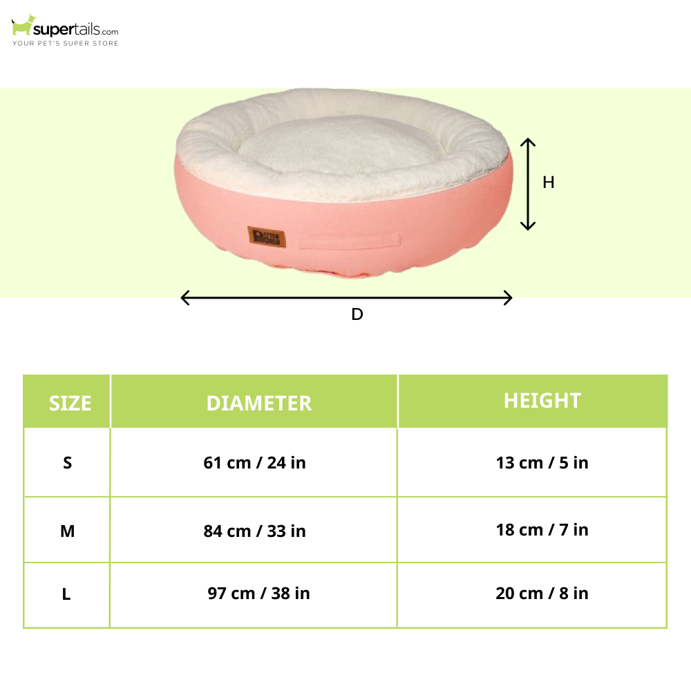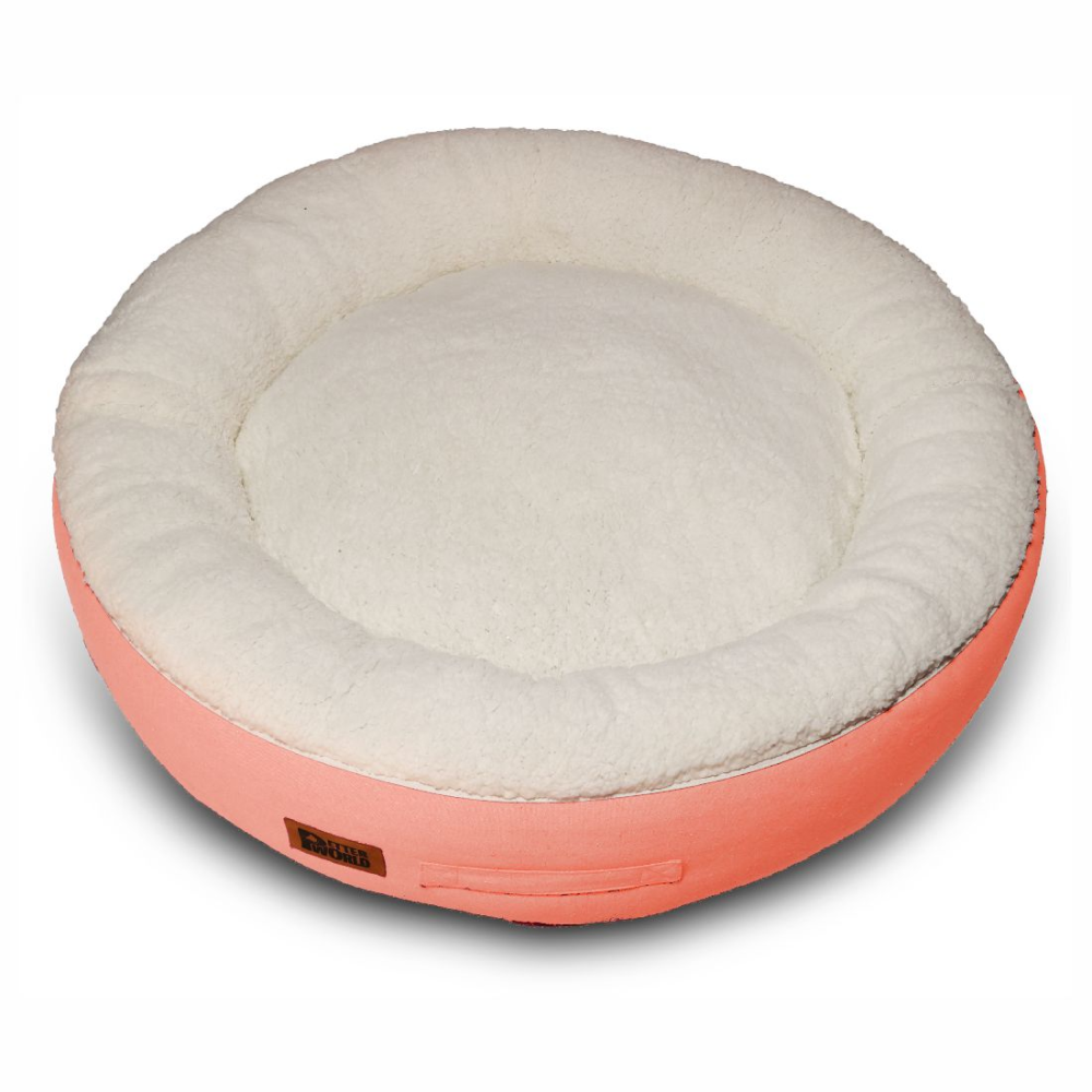 Petter World Ultra Luxury Cotton Canvas Donut Bed With Removable Sherpa Fur Cushion for Dogs (Peach Pearl)