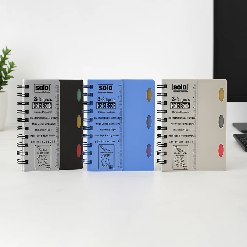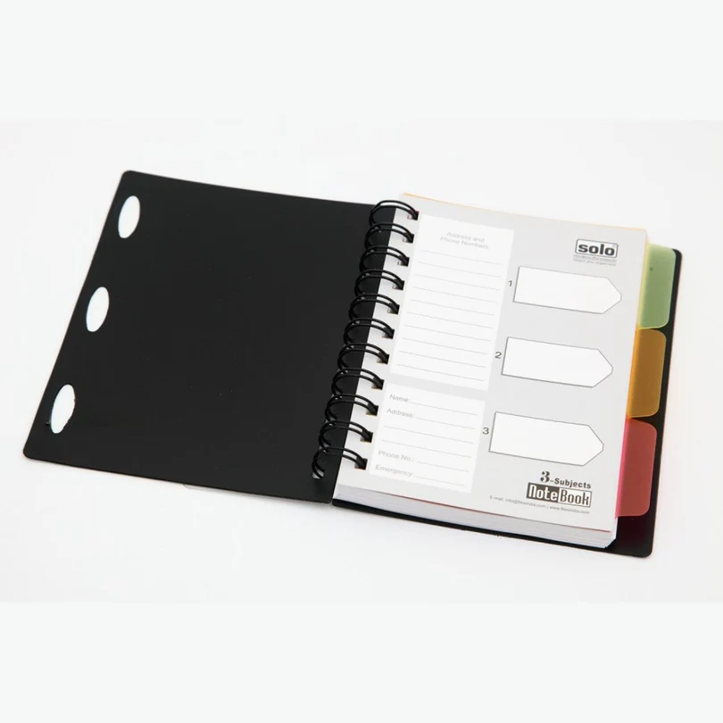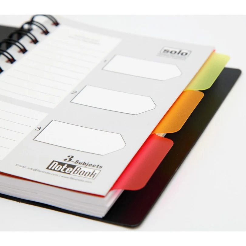 - Solo Three Subject A6 Notebook is a compact and versatile notebook designed for convenience and organization.