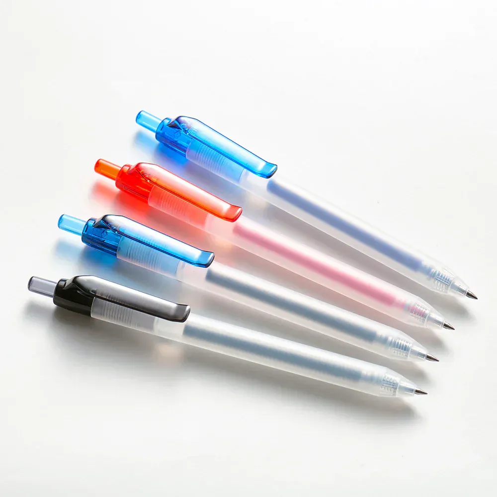 - The translucent milky white pen body is matched with components of the same color as the ink.