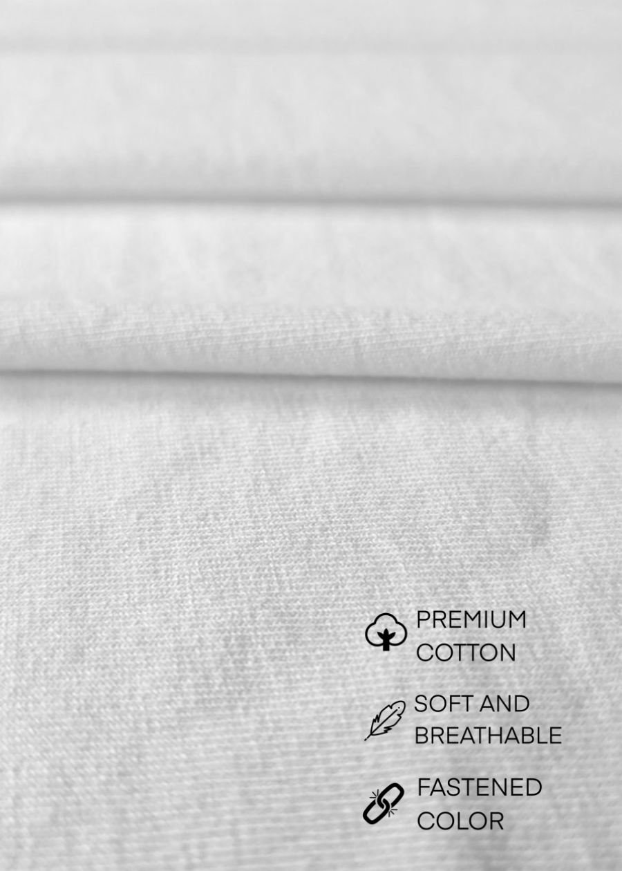• Country of Origin: Proudly Indian • Material: 100% Cotton • GSM: 175 GSM • Neck: Round Neck • Sleeves: Half Sleeve • Bio Washed, Preshrunk, Silicon Washed Fabric • Light weight (Improves breathability in hot conditions as well) • Sustainable 2X stronger cotton thread used • Comfort (Bio washed fabric with Relaxed fit does not cling to the body) • Wash Care: Machine wash. Do not iron directly or scrub on print. Dry on flat surface as hanging may cause measurement variations