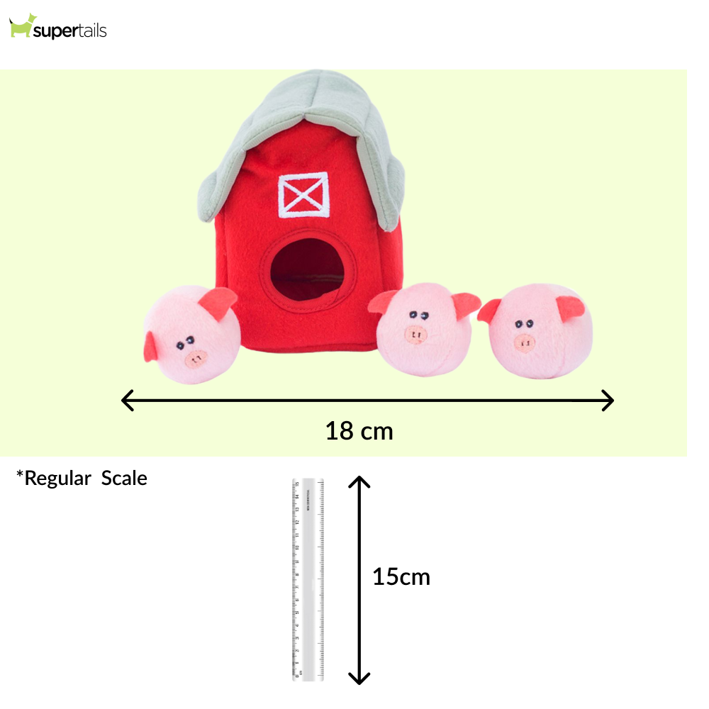 Zippy Paws Zippy Burrow with Bubble Babiez Pig Barn Plush Toy for Dogs